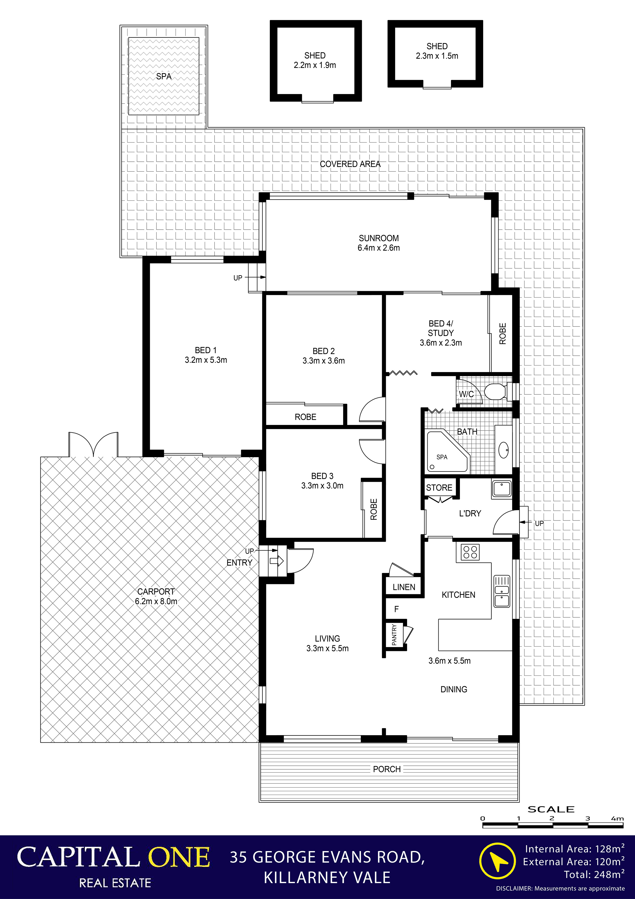 - An easy care level sun drenched 556m2 yard providing plenty of space for the family including multiple garden sheds for storage & spa to relax in